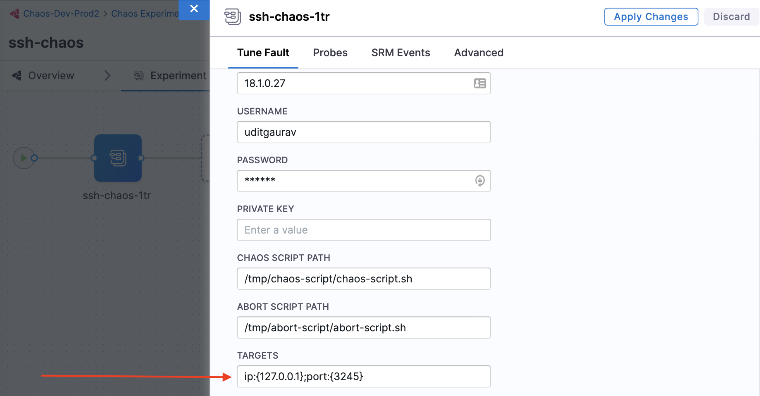 For example, set PARAM_VALS with dest_ip=127.0.0.1 and source_ip=198.168.12.0. You can pass the value in the environment variable and use the CHAOS_PARAMETER as shown here.