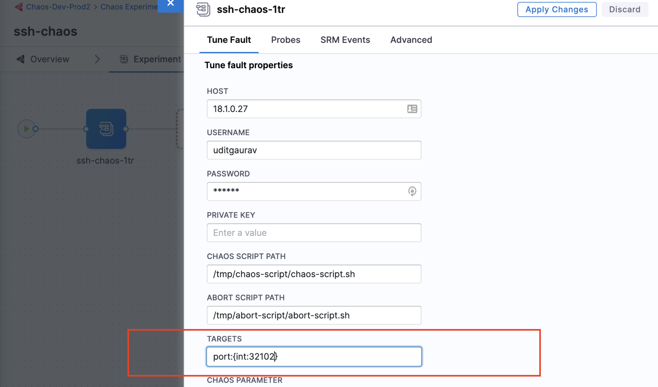 You can pass the port details and the placeholders in the environment variable. The chaos script contains the logic to extract the details of the environment variable.