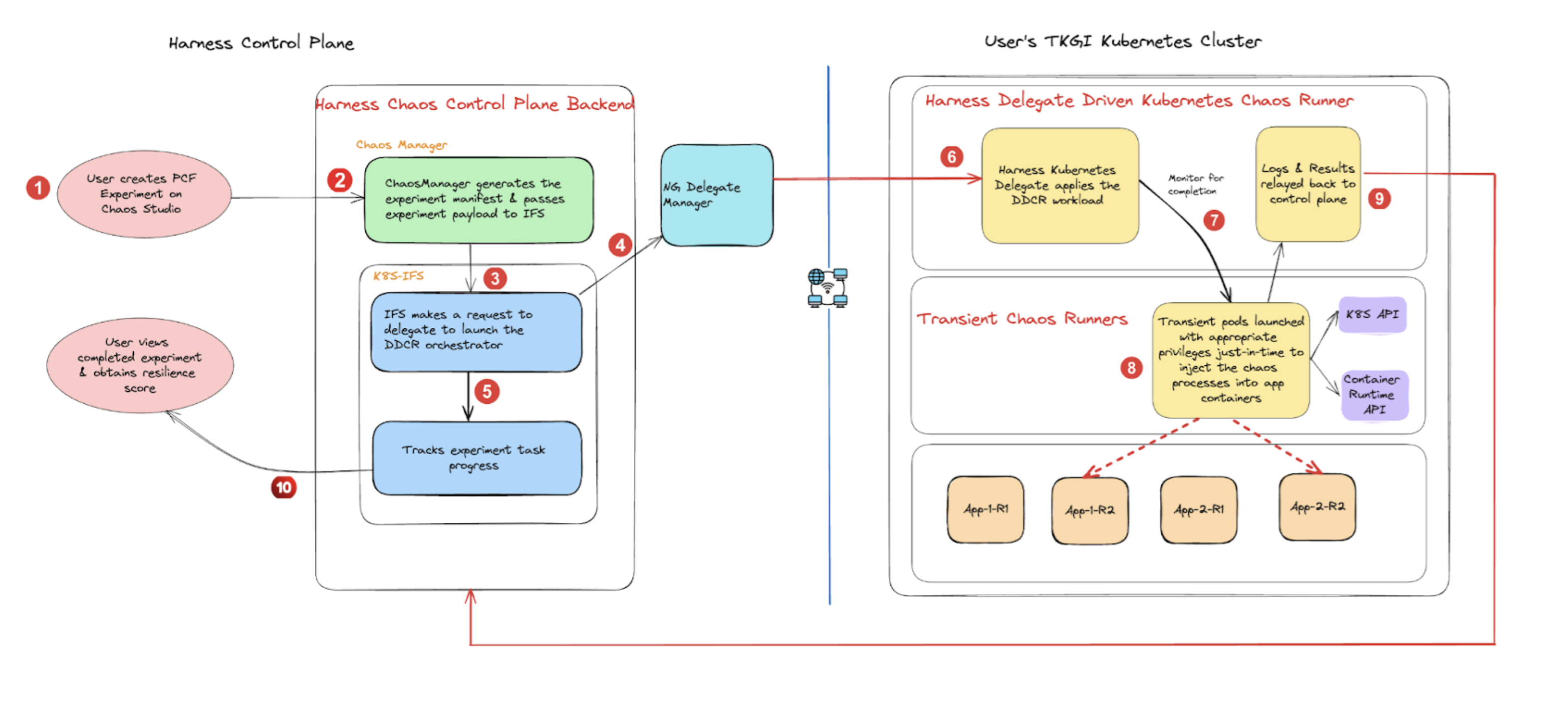 - Reuse the Harness Delegate for chaos experiment execution on the user cluster without a dedicated (or separate) chaos agent.