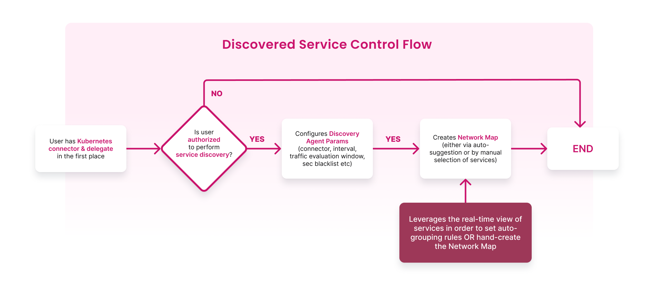 The diagram below describes the high-level flow of how you can discover services and create application maps.