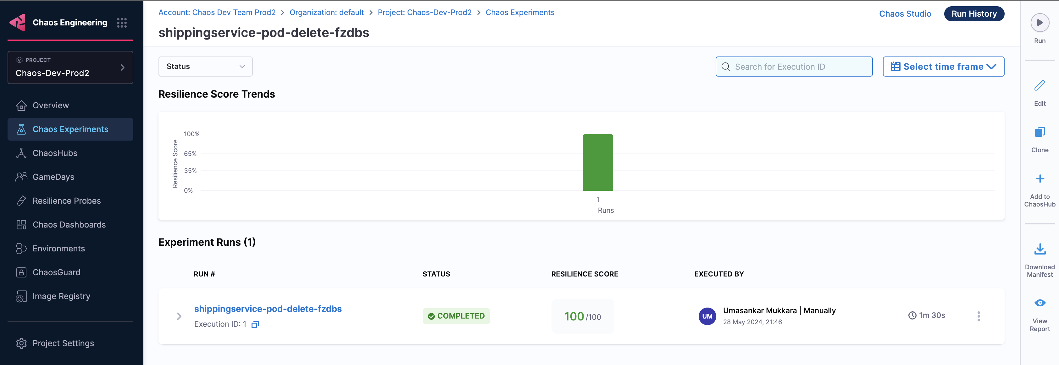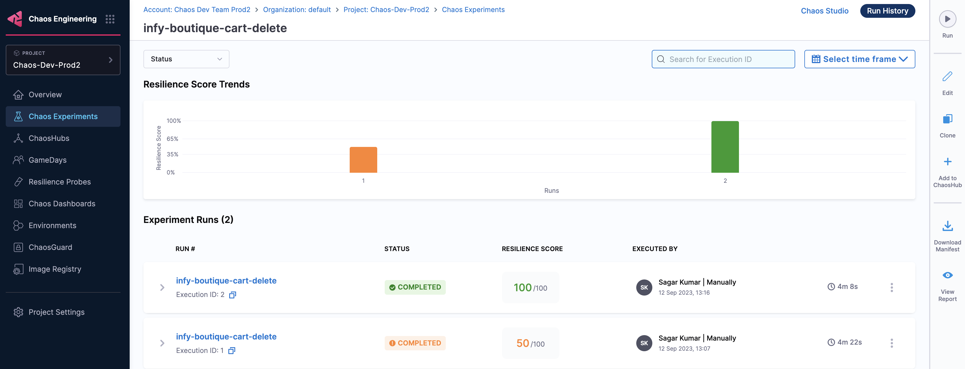 Earlier, chaos experiments that executed on dedicated chaos infrastructure would typically take more time (in the order of 4 minutes) whereas with Harness Delegate, you can complete experiment execution in less than half the time (in the order of 1.5 minutes).