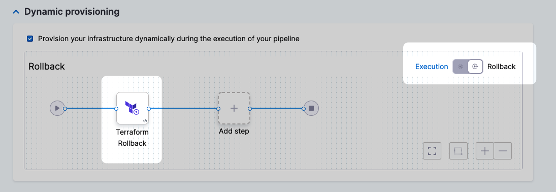For details on configuring the Terraform Rollback step, go to Terraform Rollback.