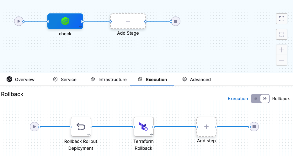 When rollback is performed, Harness rolls back the provisioned infrastructure to the previous successful version of the Terraform state using config files or the Terraform configuration from the latest successful deployment with a matching Provisioner Identifier.