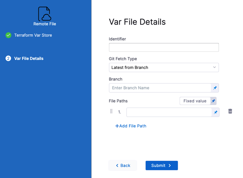 If you select Inherit from Plan, you'll enter the unique Id used by a Terraform Plan step in Provisioner Identifier.