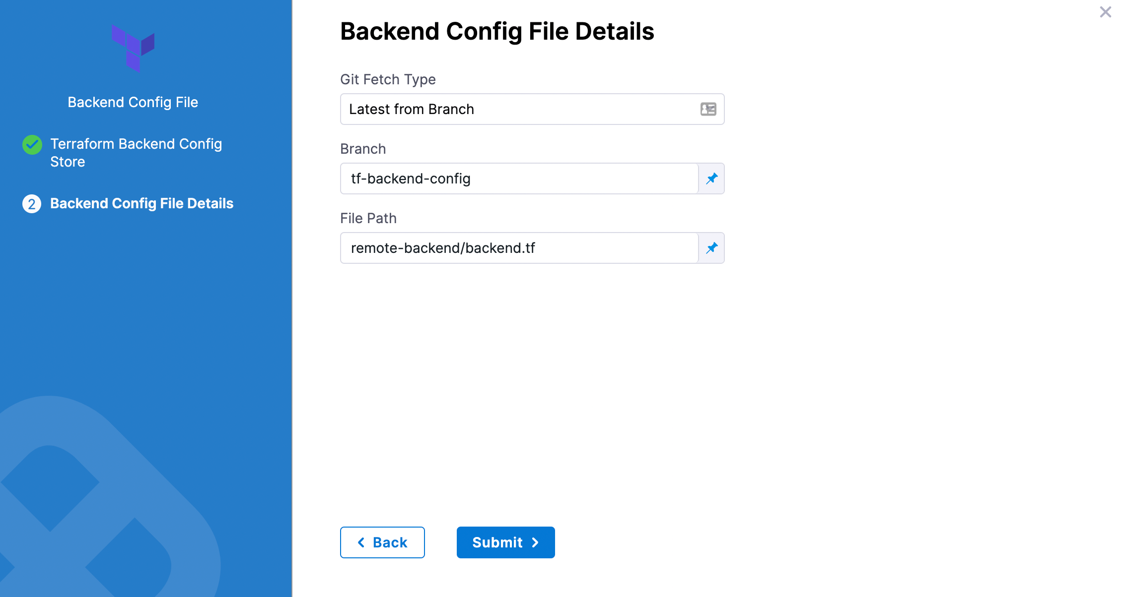 Your Terraform Apply step is now ready. You can now configure a Terraform Destory or Rollback step that can use the Terraform script from this Terraform Apply step.