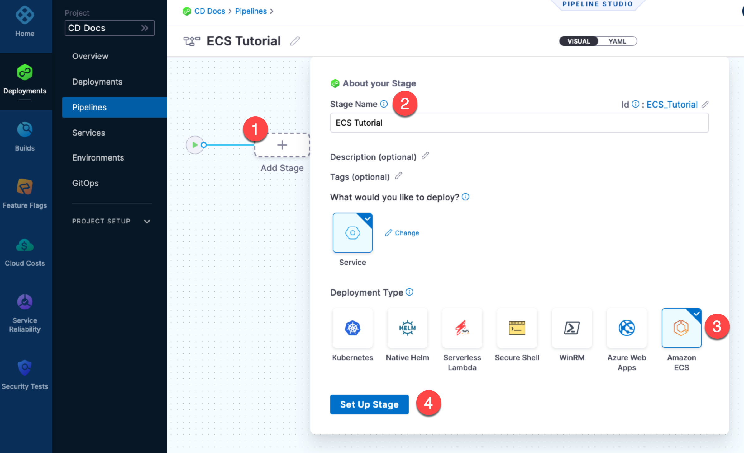- Install and register a Harness Delegate for ECS deployments.