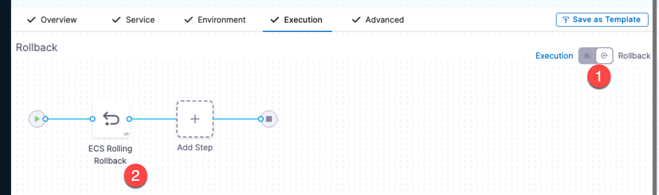 If the validations for the Blue and Green ECS services fail, Harness aborts the deployment. You must fix the issue by resetting the service in the AWS Management Console.