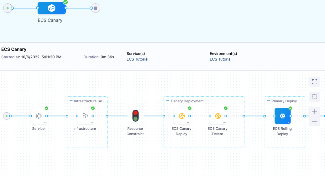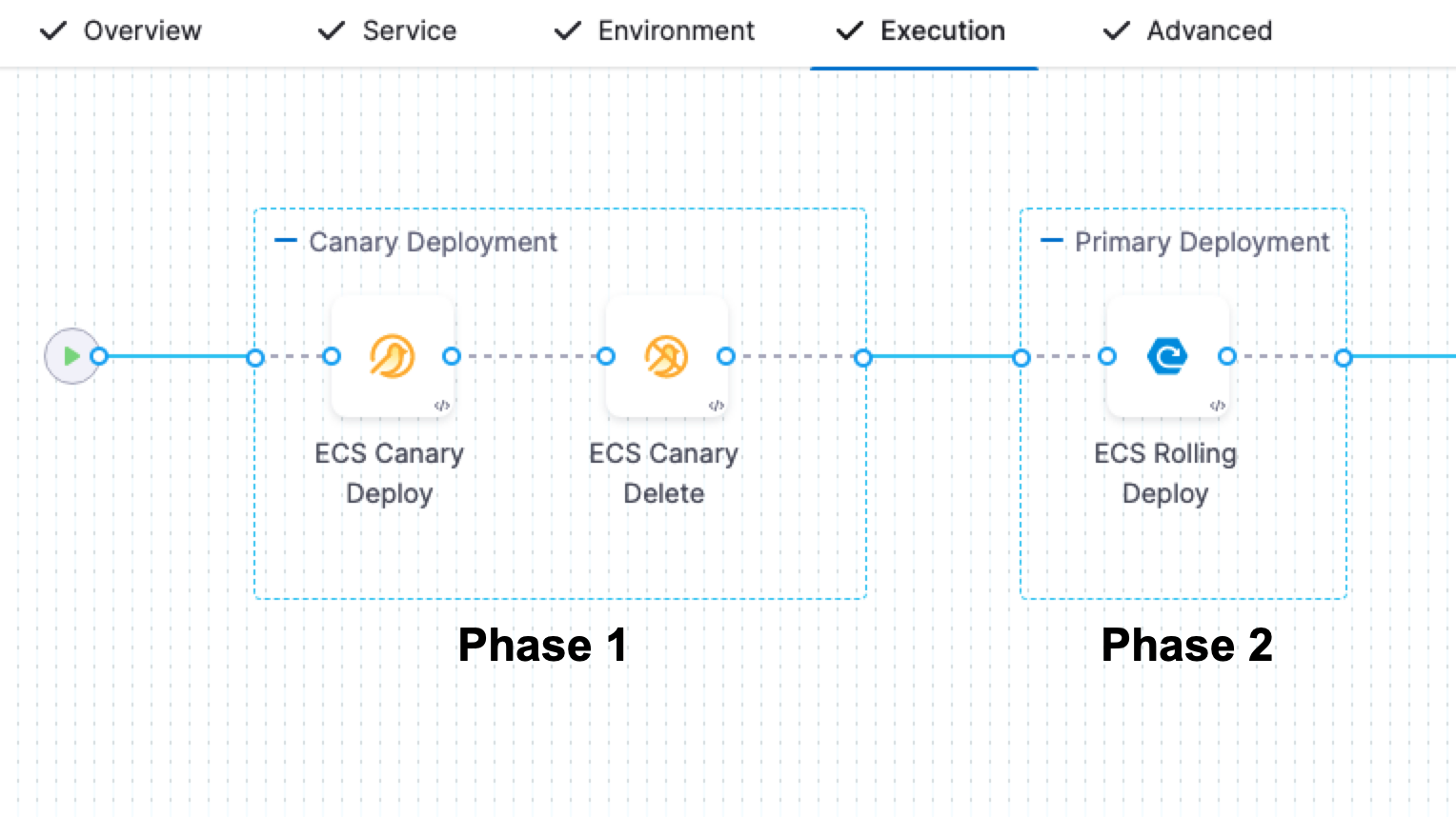 Harness performs some validations before the deployment. Before the deployment, Harness identifies ECS Blue and Green services based on the target group and updates tags accordingly. It then starts the deployment.