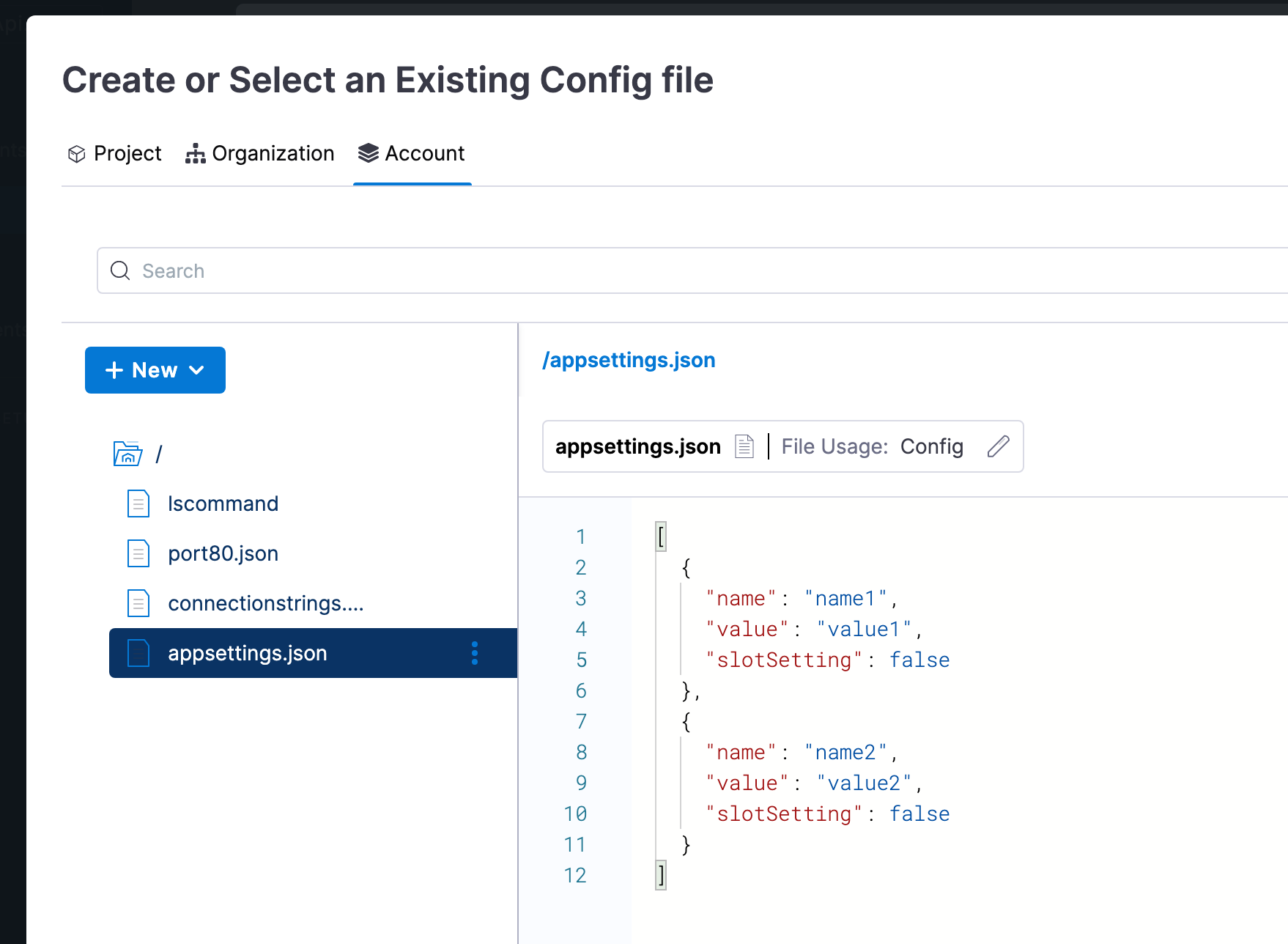 • If you add App Service Configuration settings in the Harness Service, you must include a name ("name":), and the name must be unique. This is the same requirement in Azure App Services.