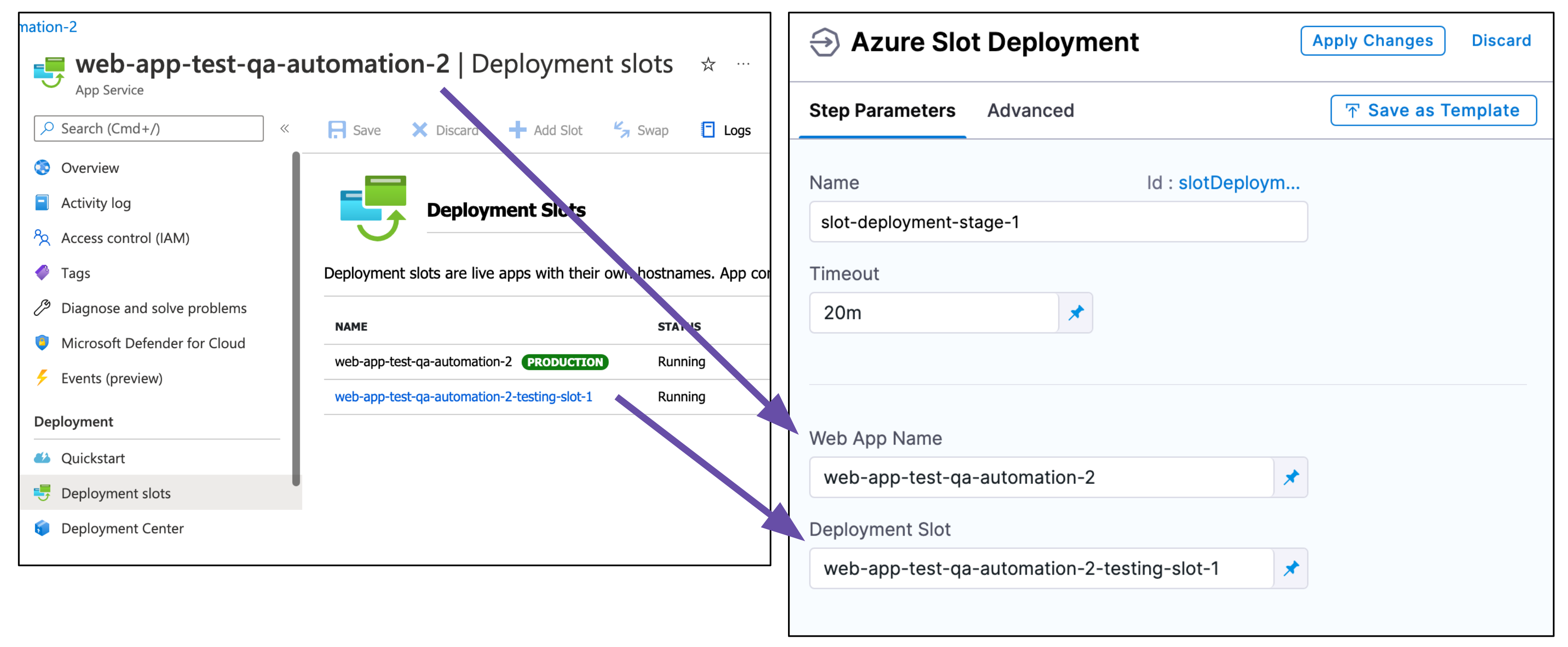 • Deployment Slot: Enter the name of the Source slot for the deployment. This slot is where Harness deploys the new Web App version.Make sure the slot you enter is running.
