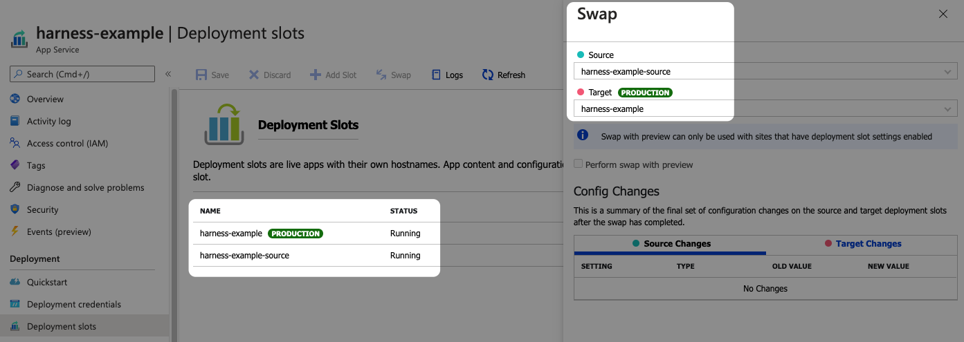 If you are new to Azure Web App deployment slot swapping, see What happens during a swap from Azure.
