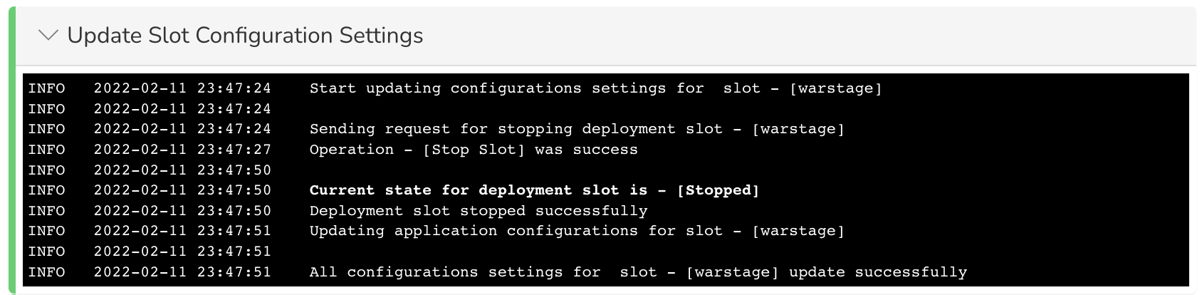 Once you run the pipeline you will see the swap in the Swap Slot step logs: