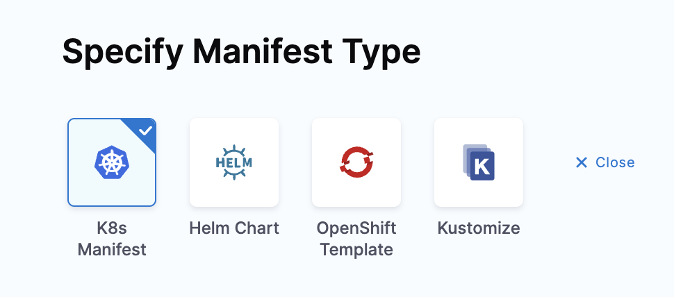 In Specify Manifest Type, select K8s Manifest, and click Continue.