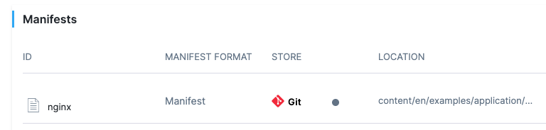 - In Manifest Details, enter the following settings, test the connection, and click Submit. We are going to provide connection and path information for a manifest located at https://raw.githubusercontent.com/kubernetes/website/main/content/en/examples/application/nginx-app.yaml.- Manifest Identifier: enter nginx.