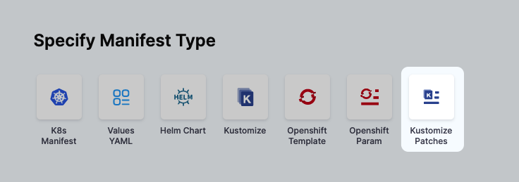 - In Specify Manifest Type, select Kustomize Patches, and click Continue.
