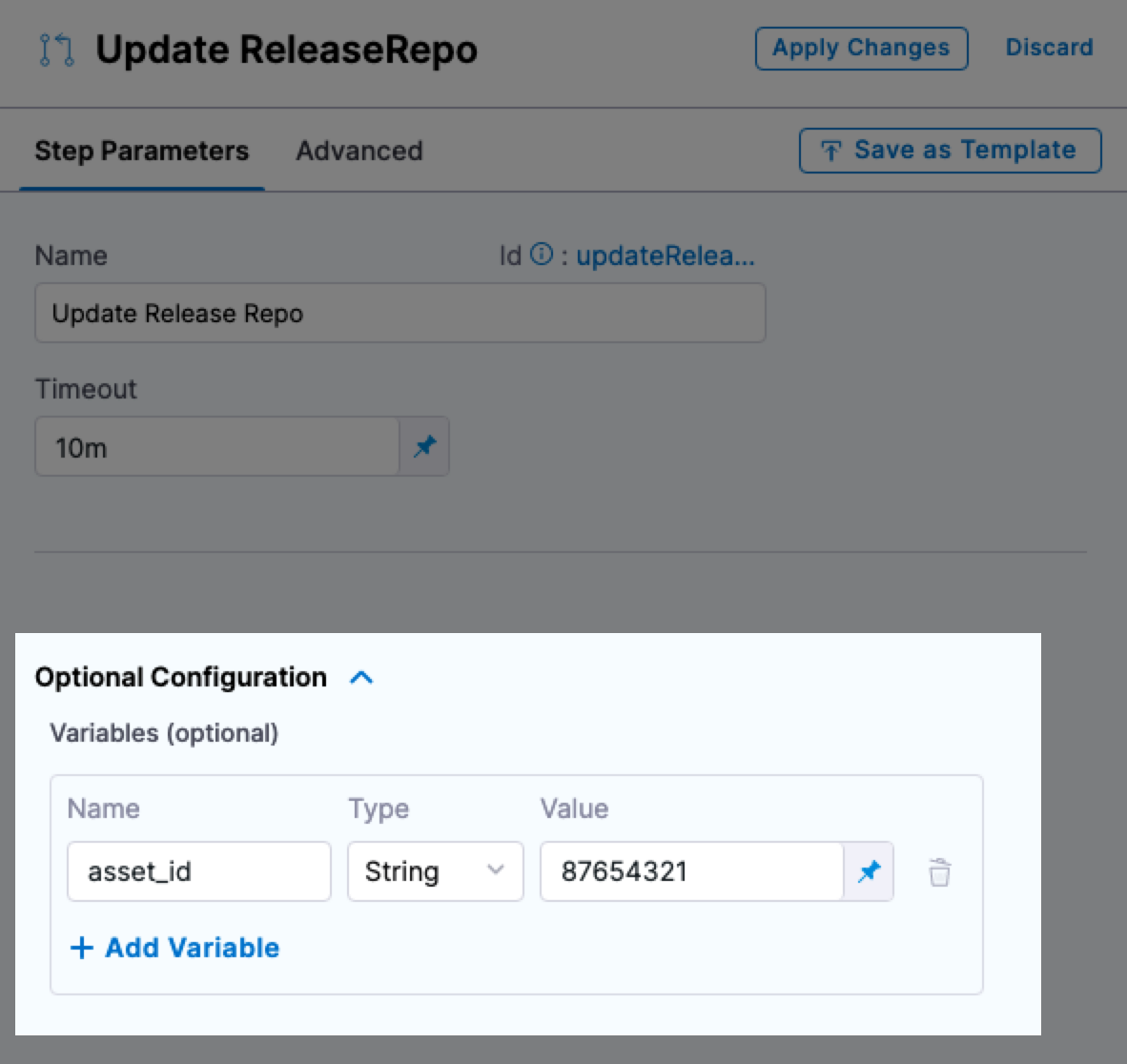 Values from the Update Release Repo step have a higher priority than service or environment variables.