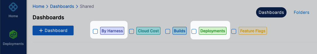 The account-wide Platform Dashboards in Harness contain built-in dashboards that provide advanced details about your deployments and services.