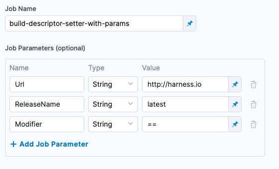 If you are using a parameterized build, when you select the job in Job Name, Harness will automatically populate any job parameters from the server.