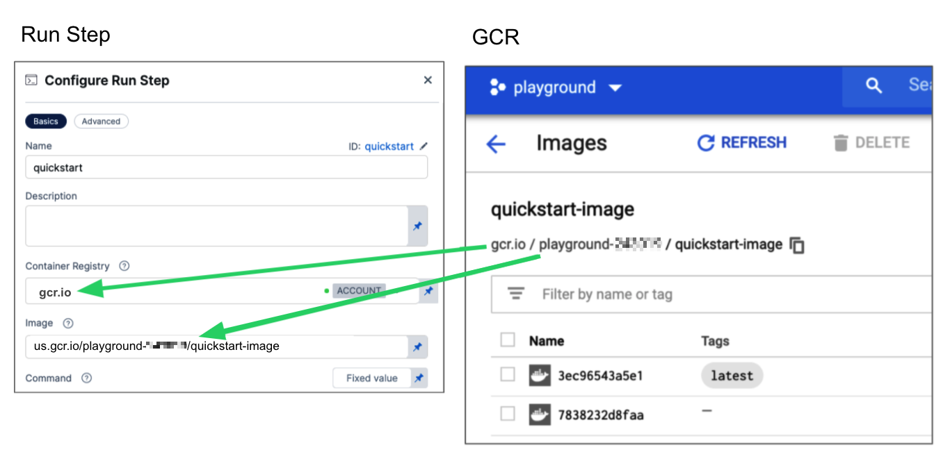 In order for the Run step to execute your commands, the build environment must have the necessary binaries for those commands. Depending on the stage's build infrastructure, Run steps can use binaries that exist in the build environment or pull an image, such as a public or private Docker image, that contains the required binaries. For more information about when and how to specify images, go to the Container registry and image settings.