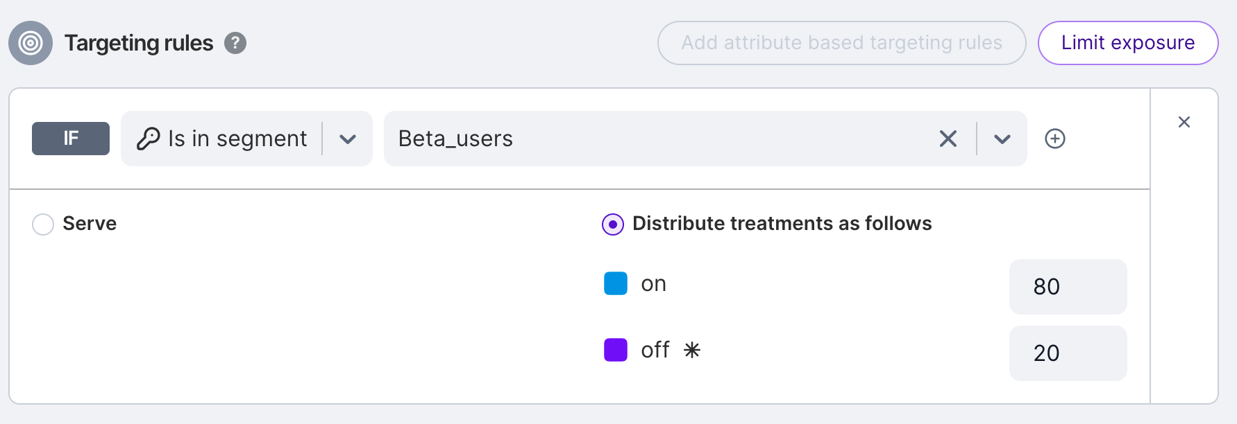 For more information on the components of a feature flag's JSON definition, see Feature flag definition. After we’ve added that to the feature flag definition, let’s say we want to increase the randomization from 50/50 on/off to 80/20 on off, as we’re fairly confident in the feature.