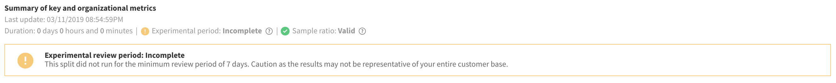 The review period was incomplete because your feature flag didn't run for the minimum review period selected for this feature flag.