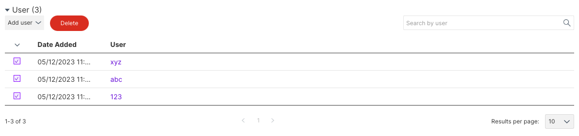 In the User section, click Add user.  For Standard segments you can choose to individually add user IDs or to add them via file import. For Large segments user IDs are added via file import using Split API. For rule-based segments user IDs are dynamically included based on targeting rules, which you can configure in the UI or using the Split API. For details about the import file contents, see the CSV import file format section below.