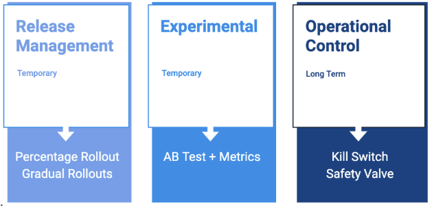 Operational Control feature flags: - Example: "If this feature were to have an issue, it could potentially impact revenue or conversions, I want the ability to quickly revert back to the previous steady-state".