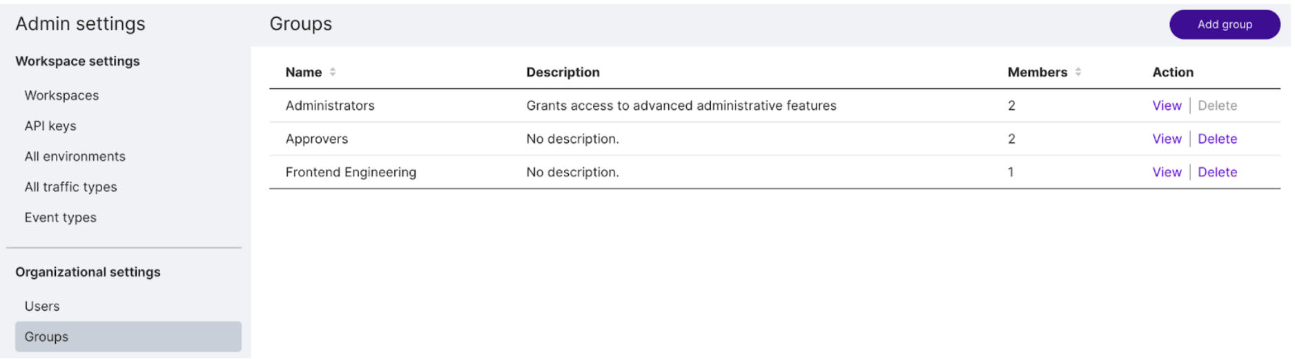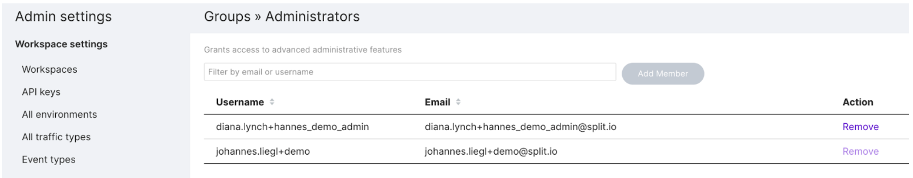 Administrators can visit the admin section of Split to enable or disable access to any environment or feature at the individual user level, or create groups to quickly grant permissions to all the users within them. Any Split user can be a part of as many groups as you’d like.