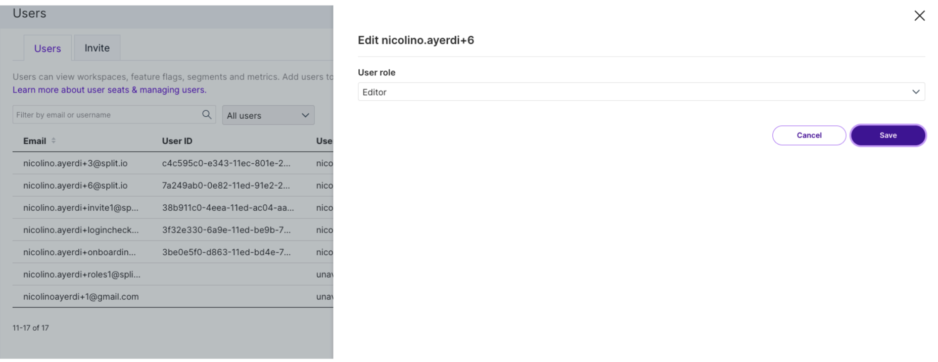 Split supports three roles to give users different permission levels in the Split UI: