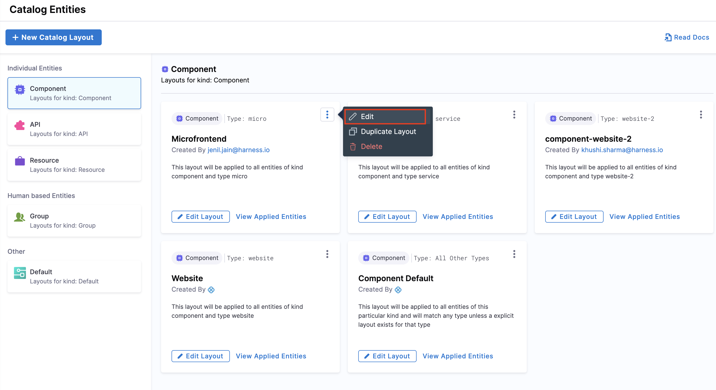 You can manage and edit Catalog Entity UI layouts directly using the Layout Editor.