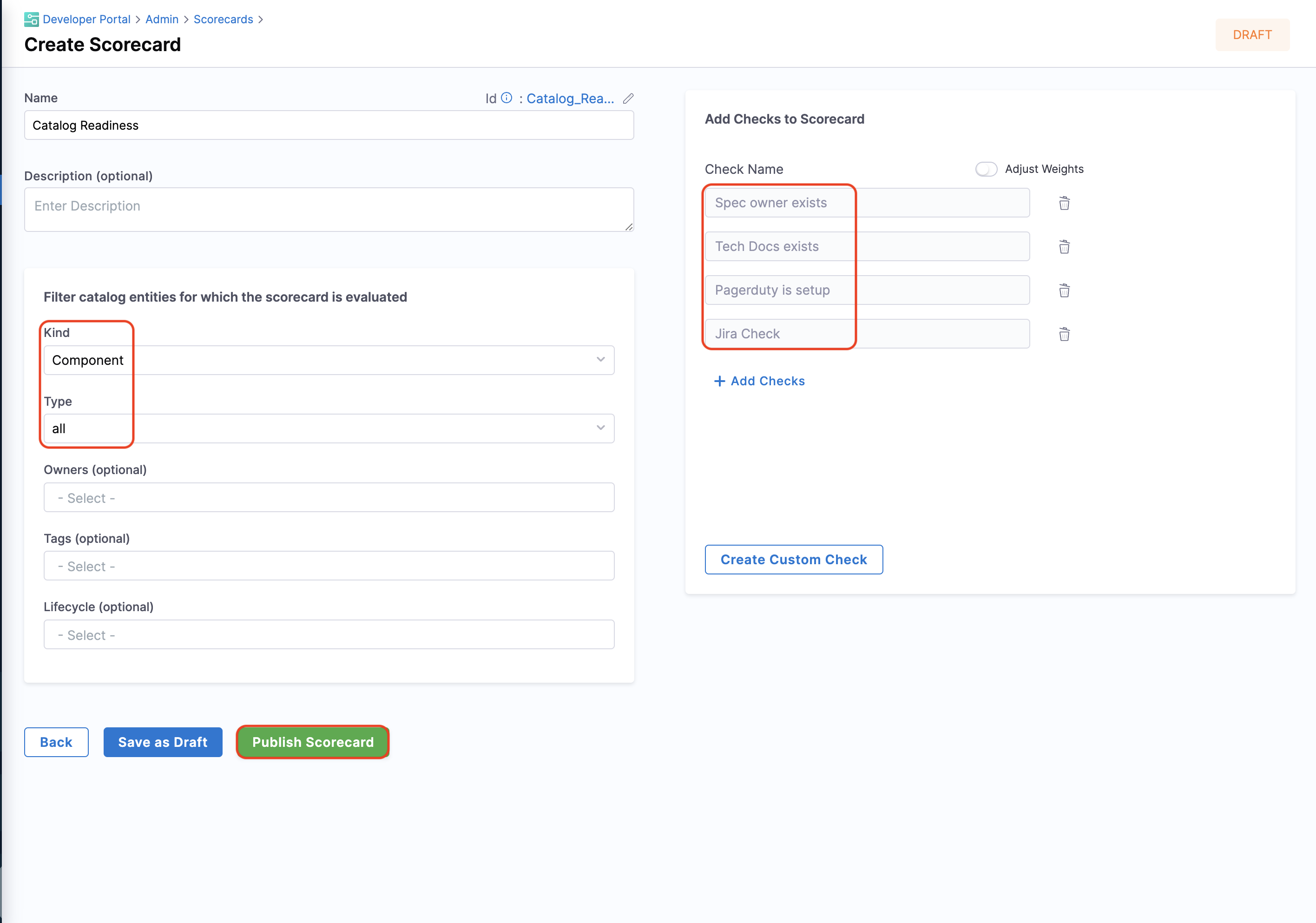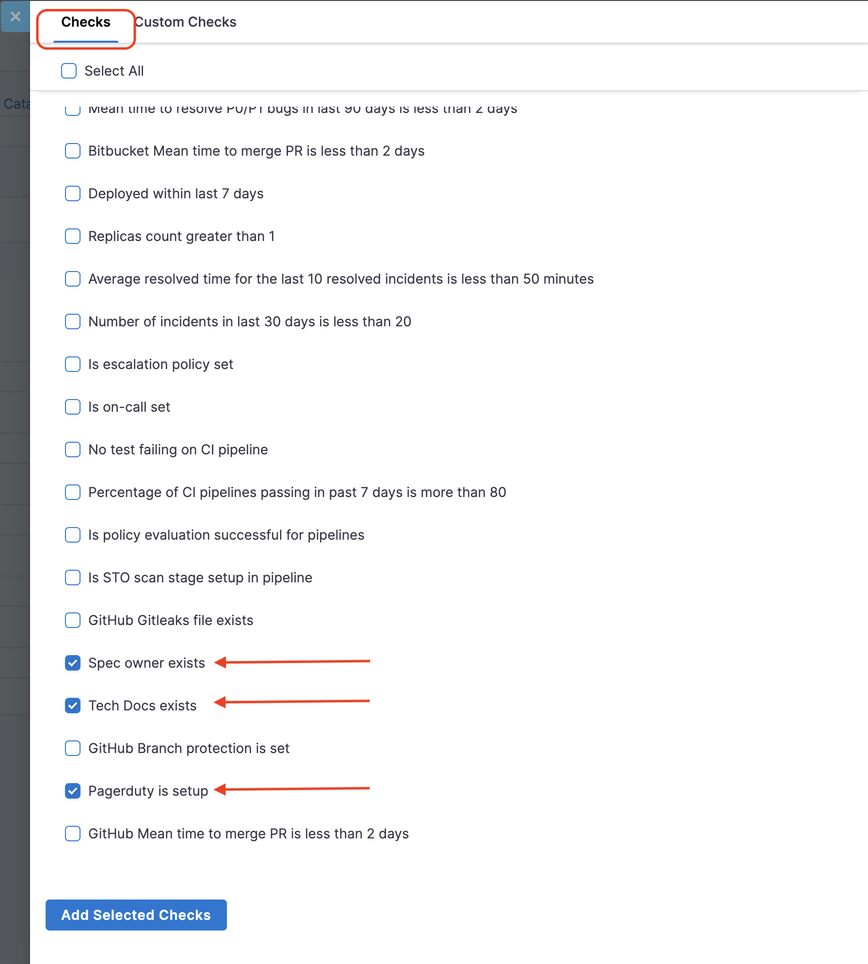 Let's edit the previously created catalog readiness scorecard to add the custom check we created above along with the already added default checks.