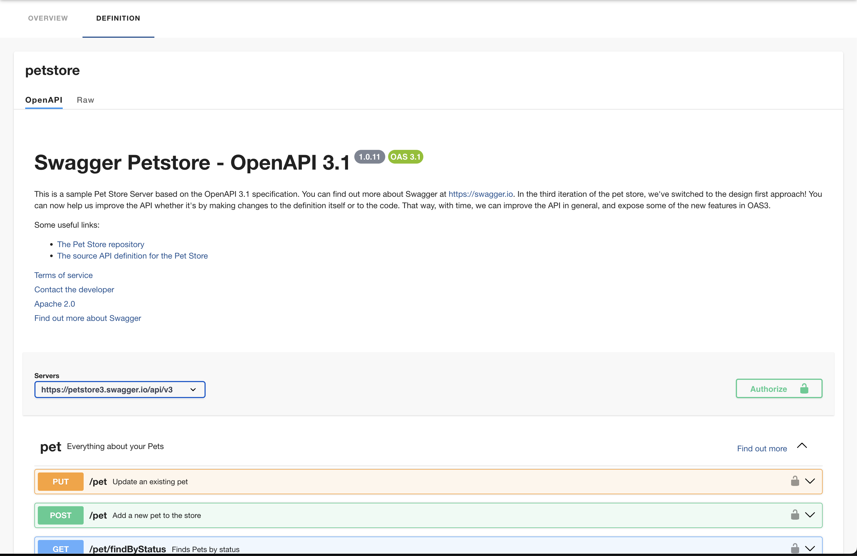 - url: https://github.com/swagger-api/swagger-petstore/blob/master/src/main/resources/openapi.yaml