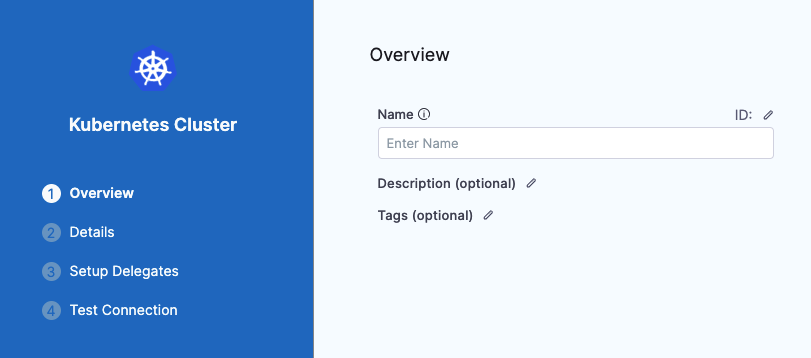 Enter a Name for the connector. Description and Tags are optional. Harness automatically creates the corresponding Id (entity identifier) based on the name.