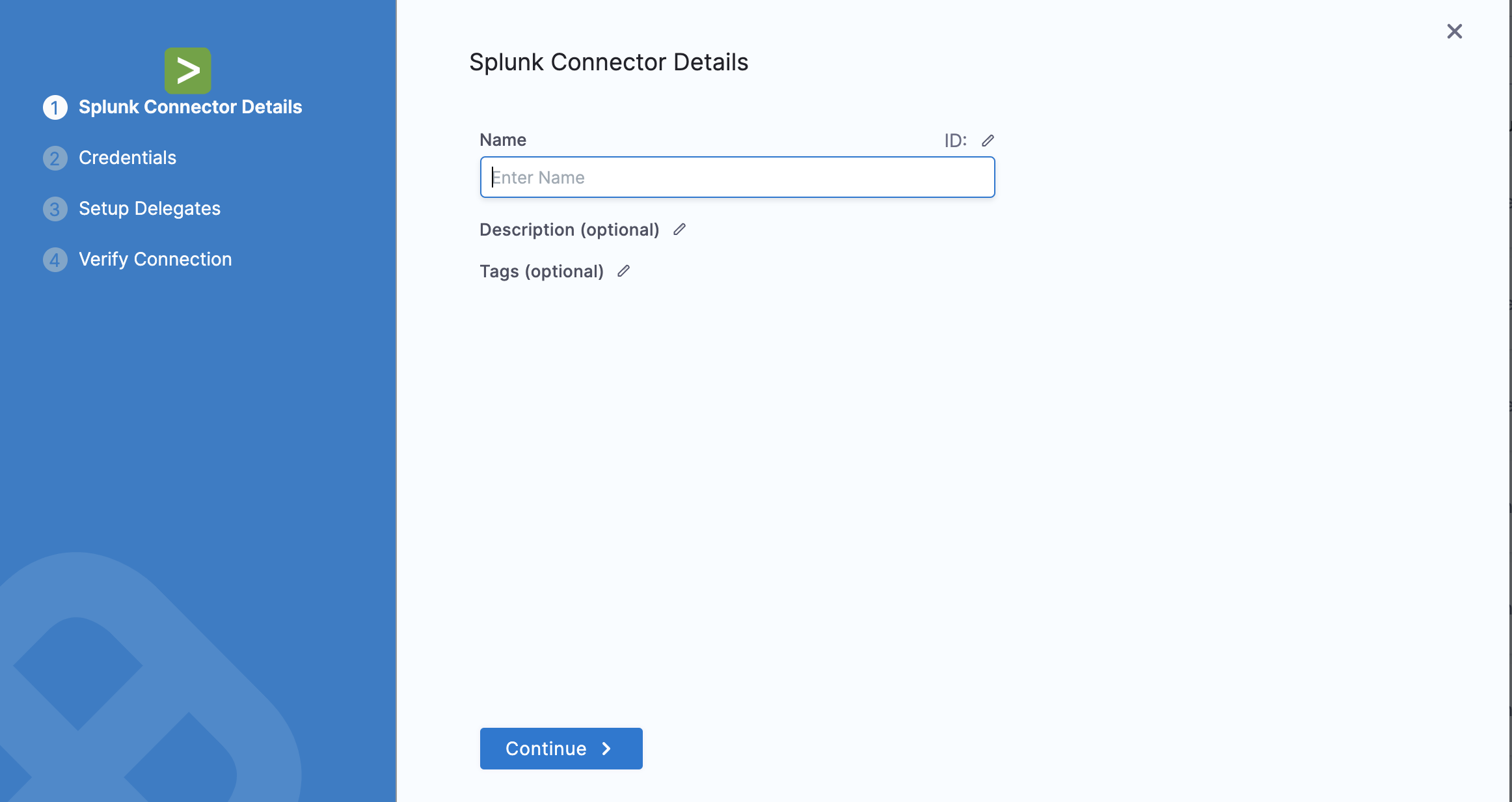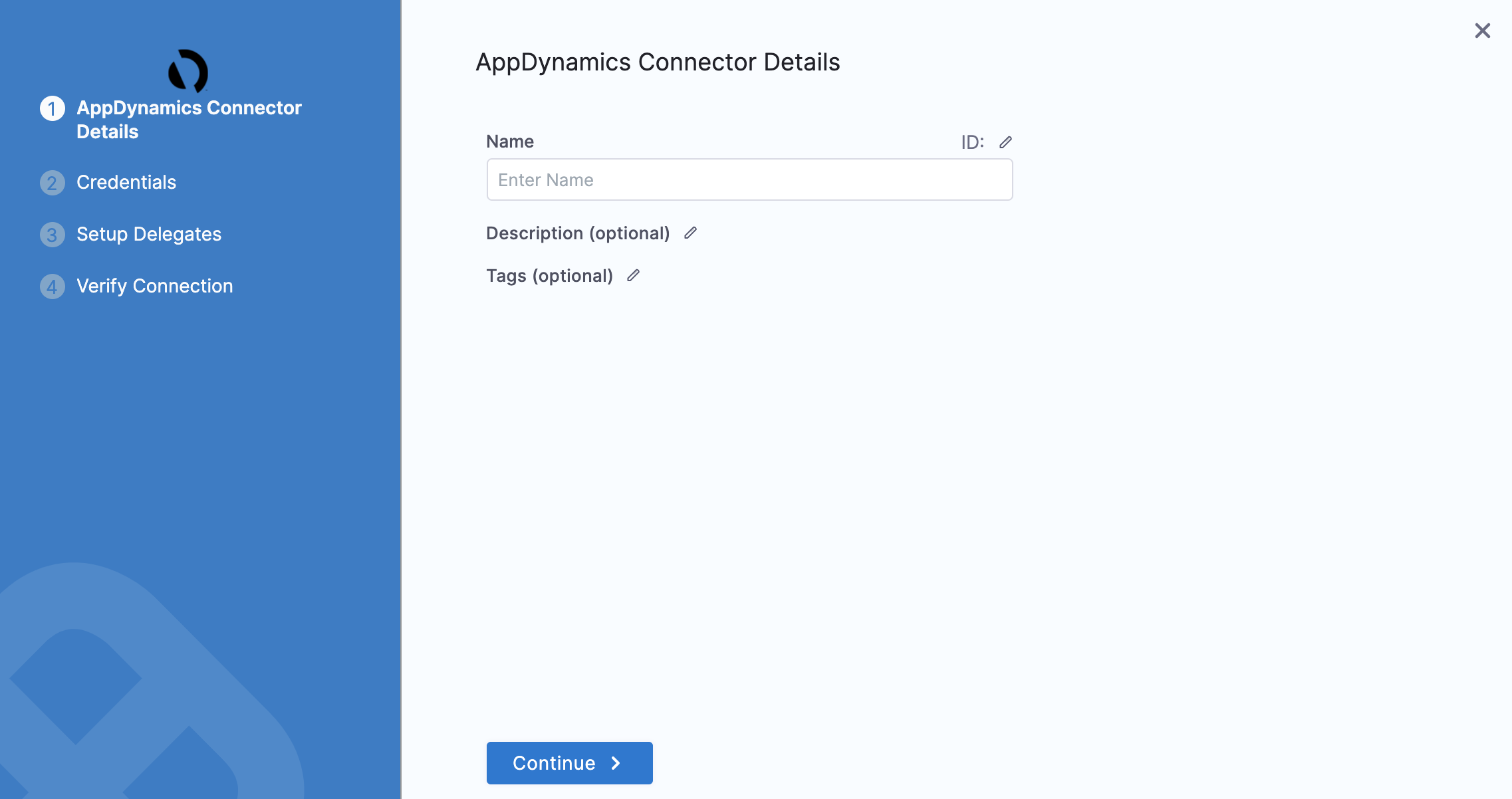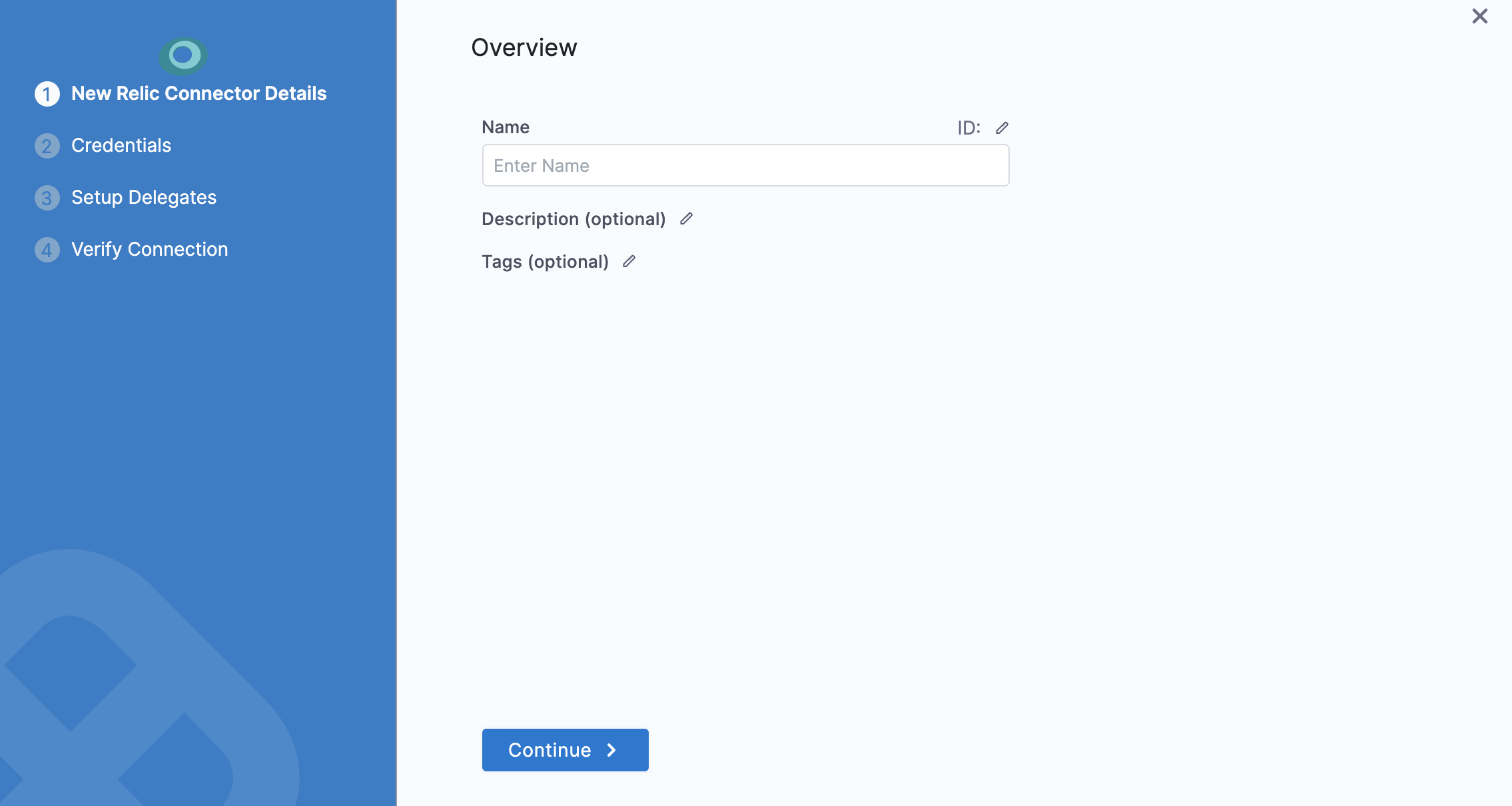 4. In the Overview tab, enter a name for the connector, an optional description, and a tag, and then select Continue.