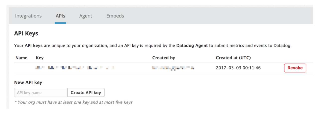 1. In Datadog, hover over Integrations, and then click APIs. The APIs page appears.