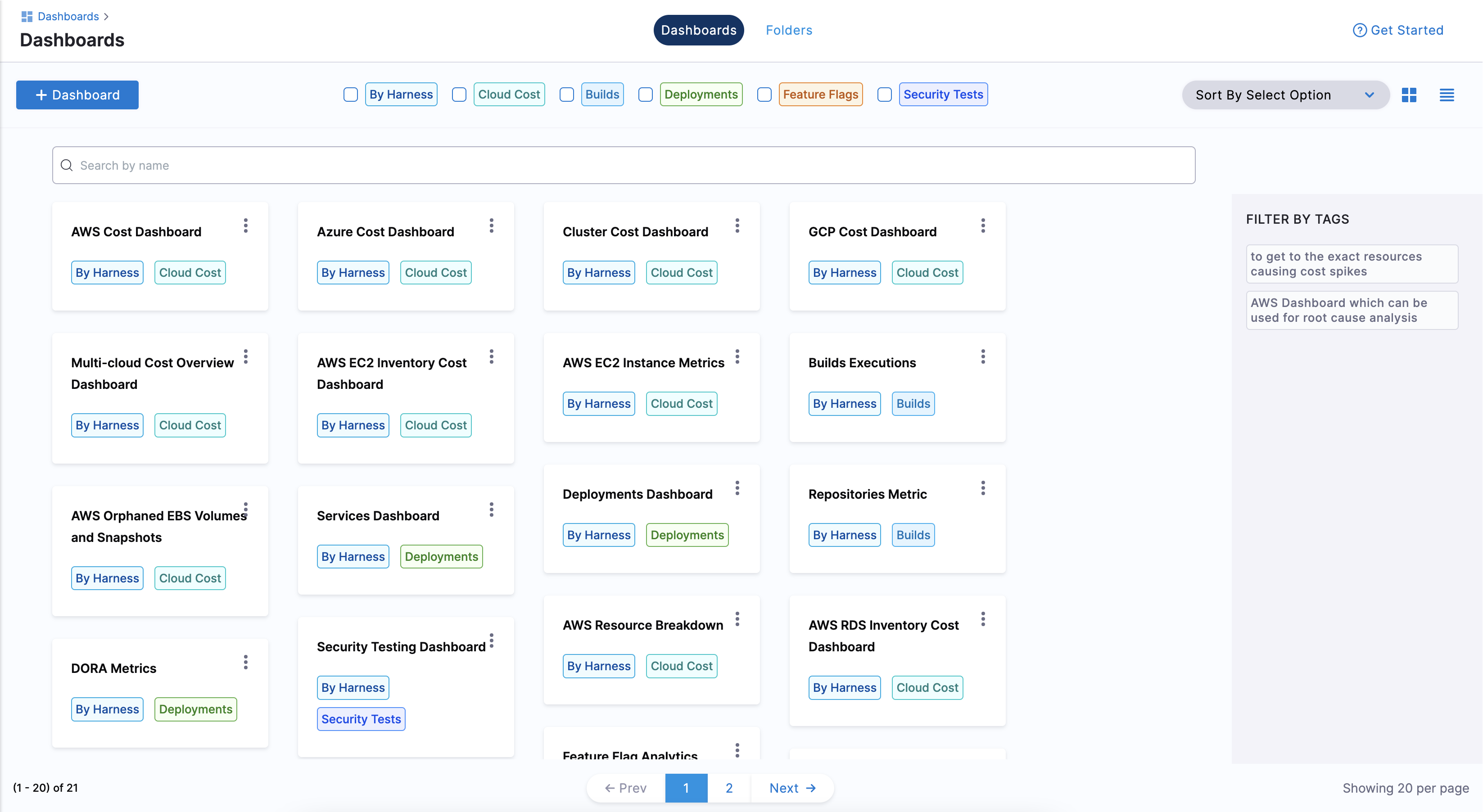 To view and access dashboards, select DASHBOARDS from the left navigation in your Harness account. You can filter the data on the dashboards by selecting specific module(s).