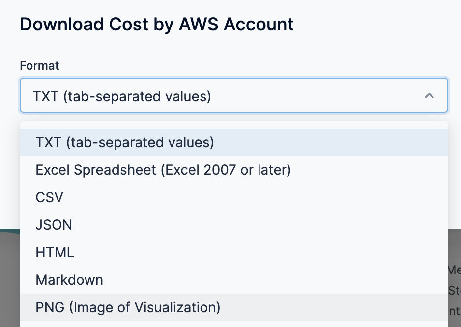 PNG (image of visualization)Depending on the format you select, some options in the Advanced data options menu may not be available.