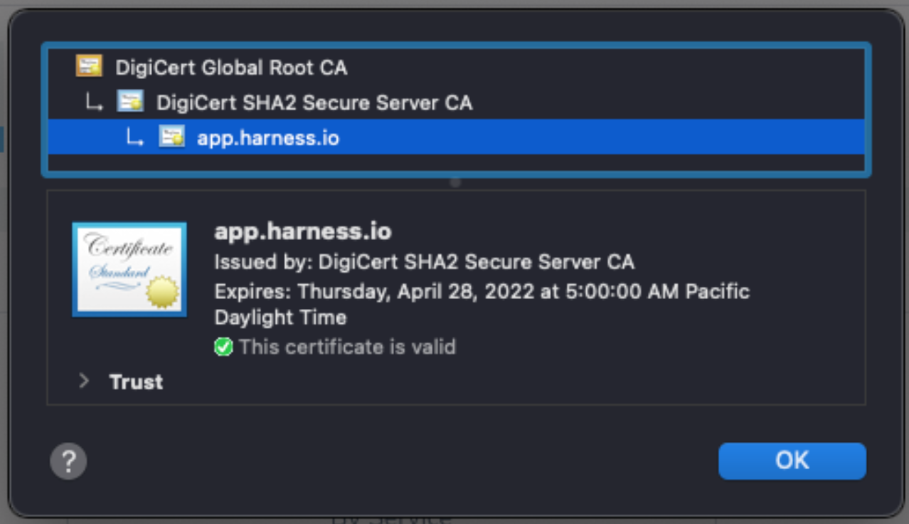 TLS/SSL communication between the Harness Delegate and Harness SaaS uses a certificate from the DigiCert Global Root CA: