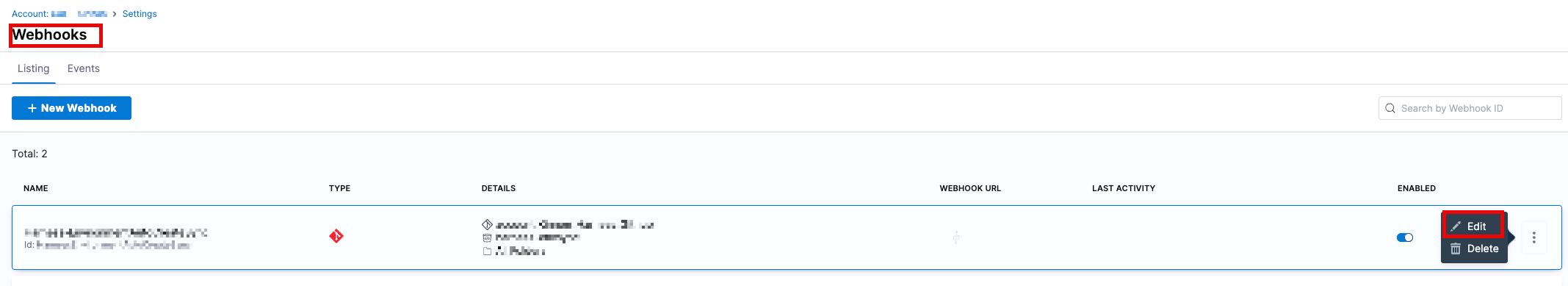 - Go to the appropriate Admin Settings(Project/Organization/Account level) for the webhook