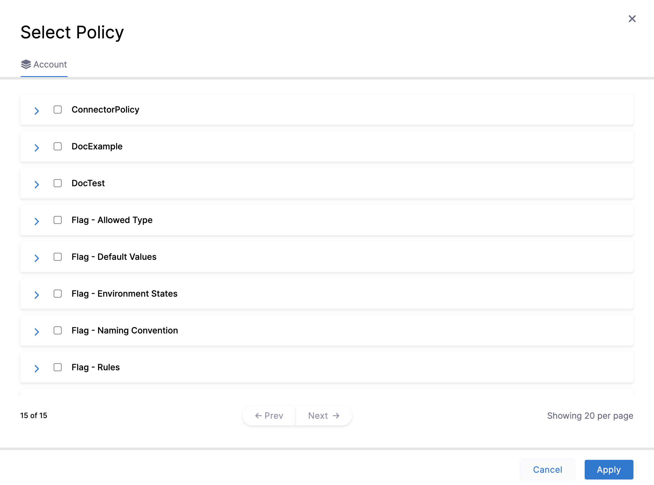 Existing Secrets are not automatically updated with policies. Policies can be applied to Secrets only on a save when they are created or updated.In Policy evaluation criteria, click Add Policy.