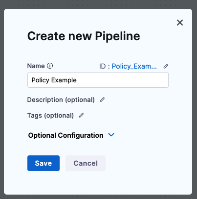 Name the Pipeline Policy Example and click Start.