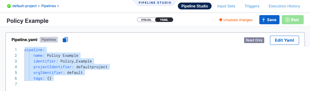 Your Harness Pipelines and entities might be created using the Harness UI or YAML, but your Rego policies will validate the JSON of your Pipelines or other entities.