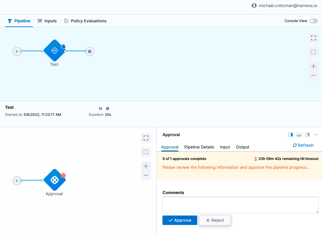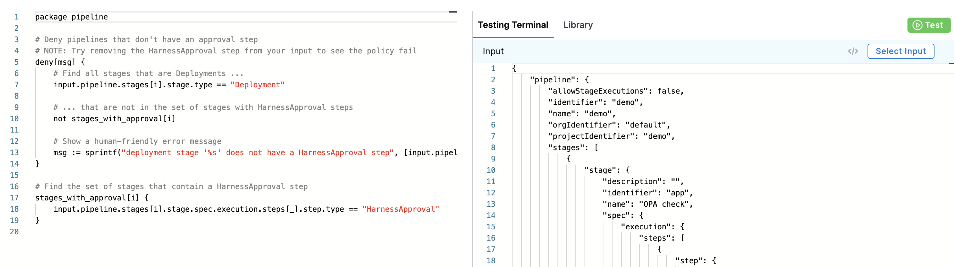 # NOTE: Try removing the HarnessApproval step from your input to see the policy fail