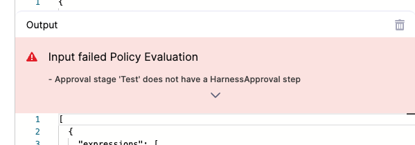 In Output, you can see that the Pipeline failed the policy because it is missing an Approval step.