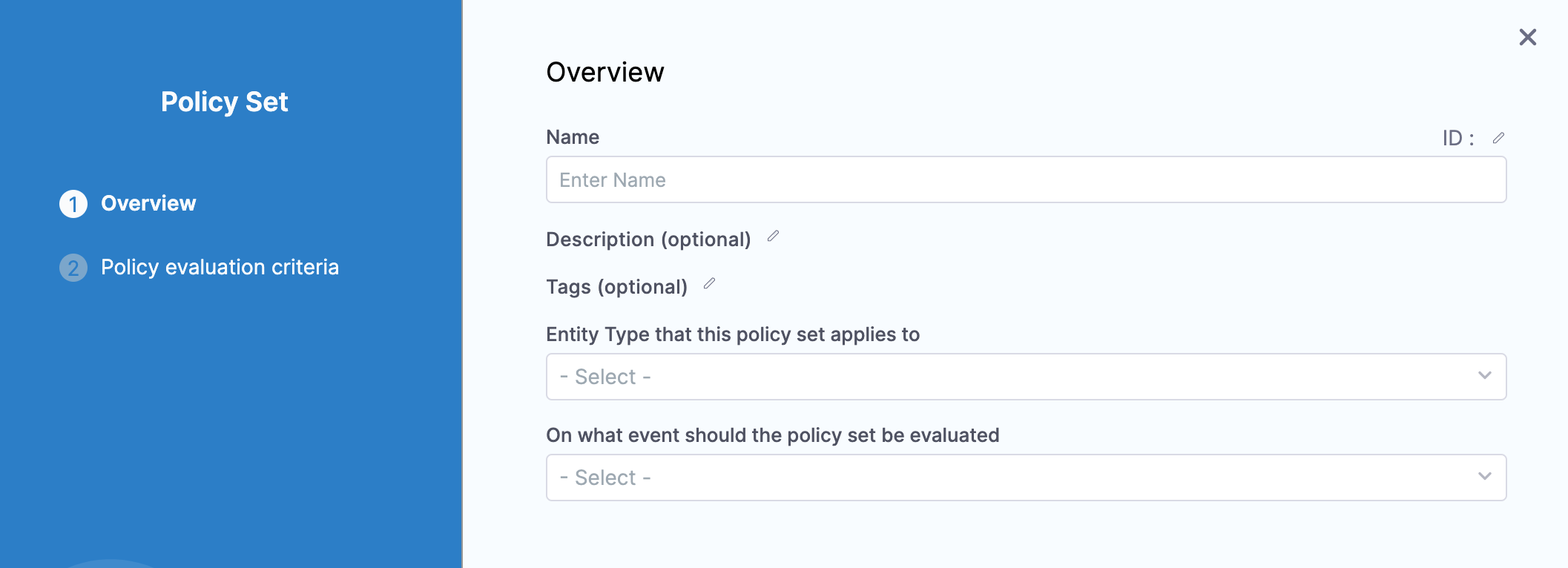 In On what event should the policy set be evaluated, select On Run.