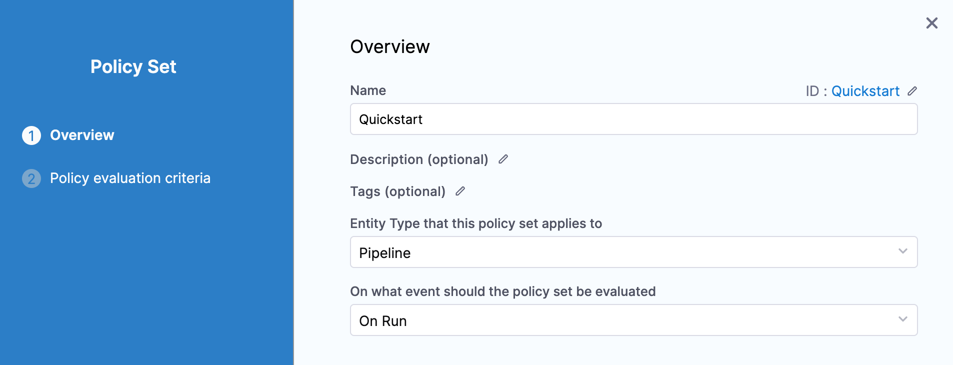 This Policy Set will be evaluated on every Pipeline.