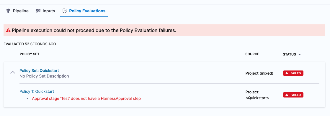 - Ran a Pipeline that failed a policy evaluation.