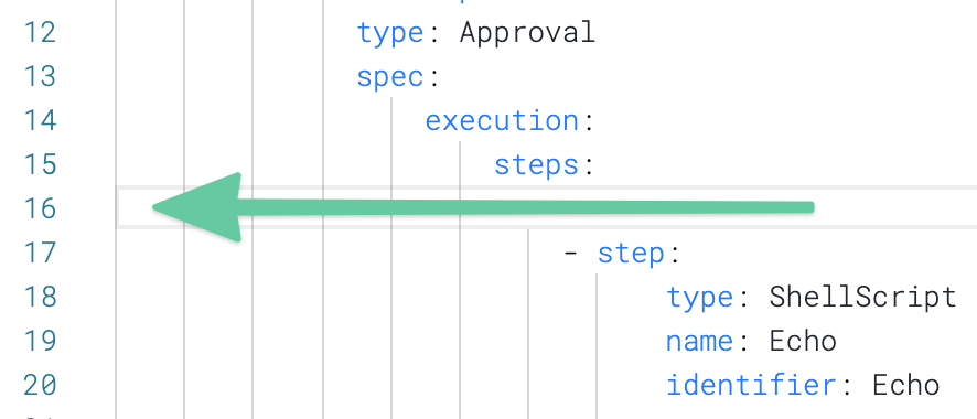 On the new line, paste the YAML for a Manual Approval step: