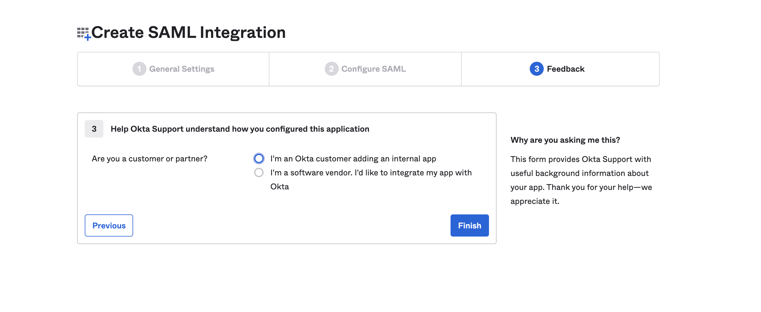 5. In the Feedback options, select the relevant option, and then select Finish.