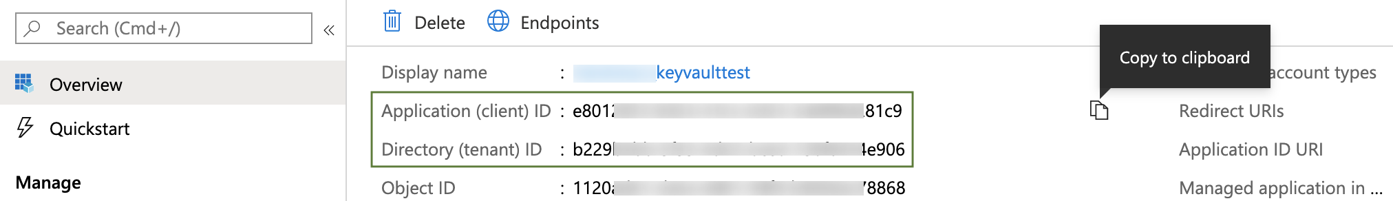 Enter Client ID, Tenant ID corresponding to the fields highlighted below in the Azure UI:  To provide these values: - In Microsoft Entra admin center, navigate to the Identity > Applications > App registrations page, then select your App registration. (For details, go to Microsoft Entra's Quickstart: Register an application with the Microsoft identity platform.)